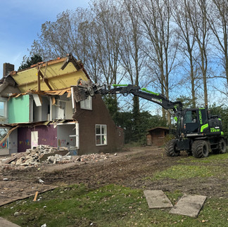 Van de familie Verhage kregen wij de mooie opdracht hun bestaande woning af te breken. De kinderen hebben creatief afscheid genomen van hun ouderlijk huis. Tevens mogen we het grondwerk ten behoeve van de fundering van het nieuwe huis verzorgen.